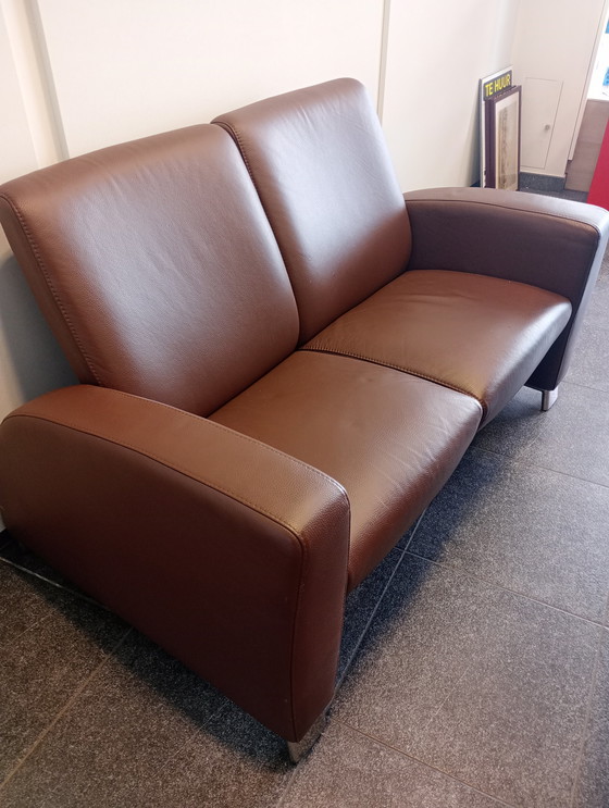 Questa poltrona reclinabile duo in pelle di Stressless è un divano a due posti moderno e confortevole, perfetto per qualsiasi salotto. È rivestito in pelle marrone di alta qualità e ha una robusta base in metallo. Il divano offre un'eccellente esperienza di seduta ed è ideale per il relax. Il suo design elegante si adatta bene agli interni contemporanei.