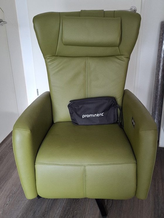 Elettrico. Base a stella. Rivestimento in pelle Massimo. Verde mela. Con supporto lombare elettrico. Con batteria e cavi. La sedia è stata usata pochissimo. Pacchetto extra per la cura della pelle.