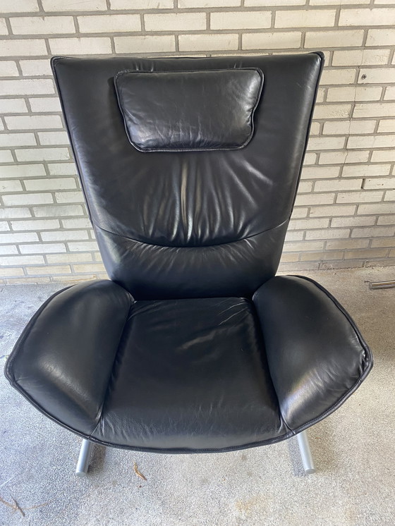 Poltrona Rolf Benz 4100 in pelle nera con poggiapiedi