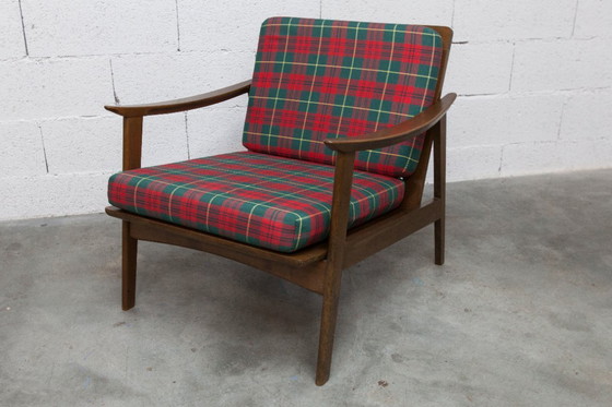 Poltrona scandinava in teak, anni '60, smontabile, con tessuto tartan