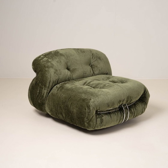 Iconica poltrona lounge Soriana, disegnata da Afra e Tobia Scarpa per Cassina nel 1969. La Soriana è diventata uno dei design lounge italiani più riconoscibili del XX secolo e si è aggiudicata il Compasso d'Oro nel 1970 per il suo approccio innovativo al comfort e alla forma.