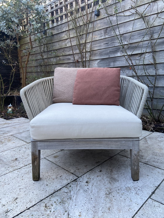Schienale intrecciato in Tricord® su telaio in alluminio. Gli schienali possono essere sostituiti singolarmente. Il Tricord è costituito da un'anima in poliestere indistruttibile e da un rivestimento esterno in poliolefina resistente alle intemperie. Il Tricord è