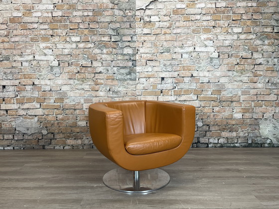 Marchio e tipo: B&B Italia Tulip Armchair Informazioni (designer): La Tulip Armchair è un progetto di Jeffrey Bernett per il marchio B&B Italia. Questa poltrona girevole con gamba in metallo e rivestimento in pelle ha un aspetto elegante e moderno e offre il massimo comfort. Dimensioni: - Larghezza: 77 cm - Altezza: 67 cm - Profondità: 80 cm - Altezza seduta: 44 cm Colore: Cognac Materiale: Pelle, Plastica