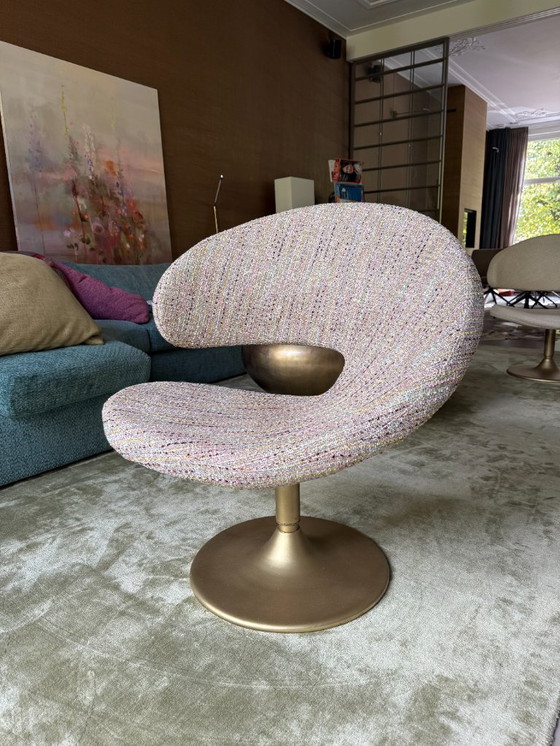Poltrona Varier Peel Club: sedia girevole di design con base in ottone e rivestimento di lusso.