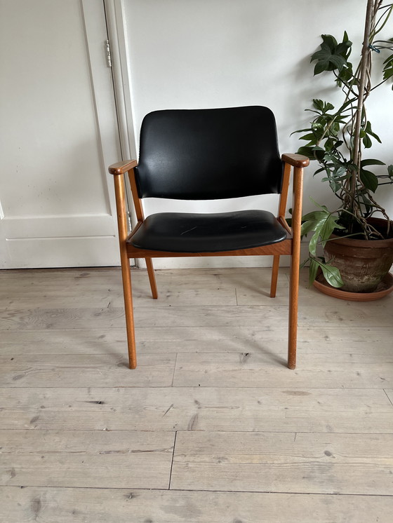 Fai un salto indietro nel tempo con questa poltrona vintage Pastoe, un vero gioiello del Mid-Century Modern. Progettata dal celebre Cees Brakman, questa poltrona combina linee eleganti con una calda struttura in legno, rendendola un'aggiunta perfetta a qualsiasi spazio abitativo elegante.