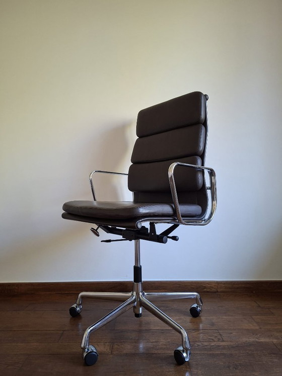 Poltrona Vitra Soft Pad EA 219 in pelle marrone castagna