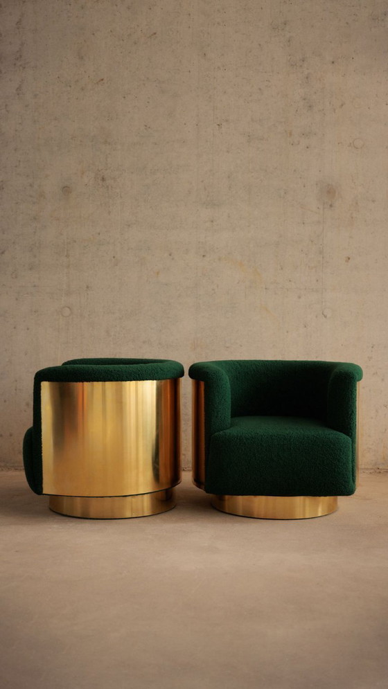 Poltrone girevoli in ottone, stile metà secolo, Italia, metà secolo (2 disponibili)