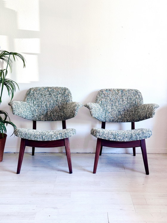 Set di due poltrone da cocktail Penguin disegnate da Louis van Teeffelen per Webe (Paesi Bassi, anni '60). La silhouette iconica ha un tocco scandinavo, ma questo design è interamente di produzione olandese. Le poltrone non solo hanno un design splendido, ma sono anche incredibilmente comode.