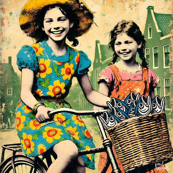 Bellissima nuova stampa pop art su tela di alta qualità. "Pesce fresco!" 80 x 80 cm. Non montata.