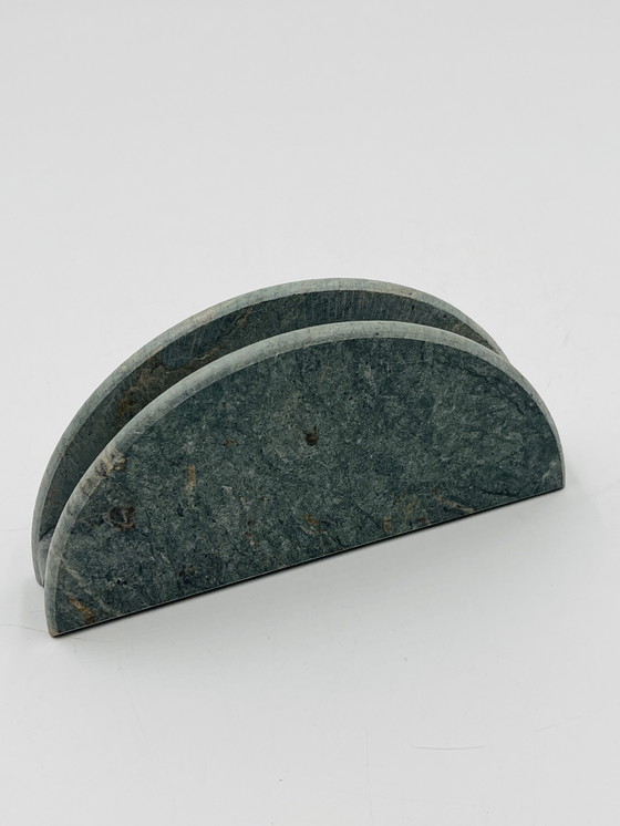 Valorizzate il vostro spazio di lavoro con questo bellissimo portacarte in marmo. Realizzato in marmo verde intenso, questo portalettere combina funzionalità ed eleganza senza tempo, rendendolo un'aggiunta perfetta a qualsiasi ufficio o spazio di lavoro. I motivi in pietra naturale e i sottili accenti marroni creano un fascino visivo unico, rendendo ogni pezzo unico nel suo genere.