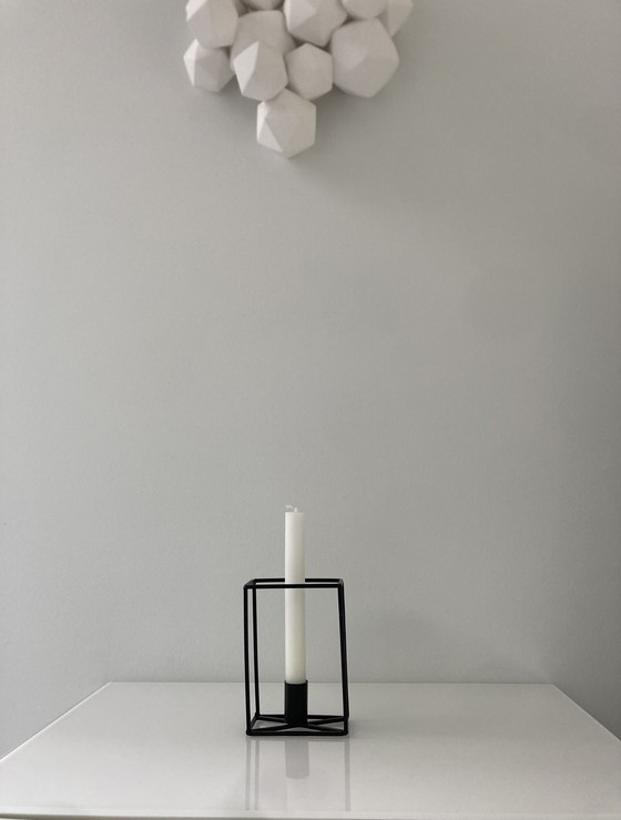 Moderno portacandele in metallo nero. Dimensioni 15x10x6 cm. In ottime condizioni. Viene fornito senza candela.