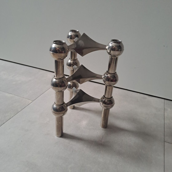 Questo portacandele modulare risale ai primi anni '70 ed è venduto in set da tre. È in ottime condizioni con normali segni di usura. Peso totale: 775 g.