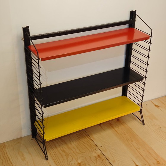 Questo grazioso scaffale è ancora in buone condizioni. Ci sono alcuni graffi qua e là. Il ripiano giallo è stato ridipinto in un secondo momento e mostra qualche segno di usura.