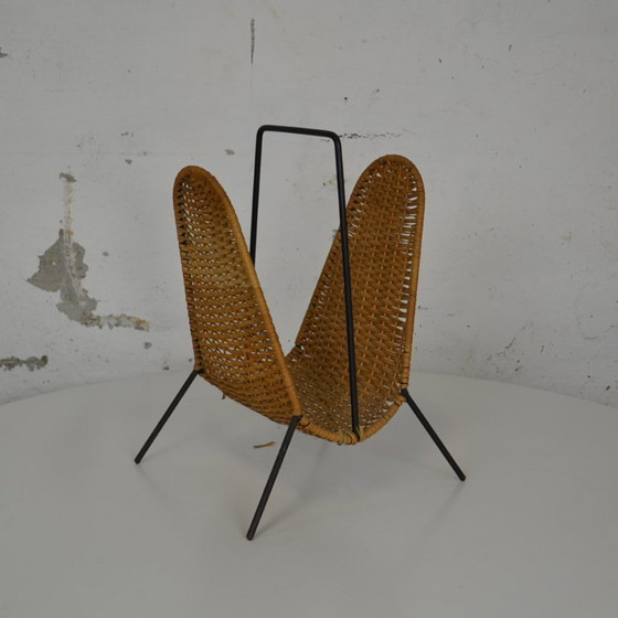 Questo portariviste in rattan, disegnato da Carl Auböck e prodotto da Illums Bolighus, è uno splendido esempio di design moderno di metà secolo. Con le sue linee eleganti e i materiali naturali, aggiunge un tocco di fascino vintage a qualsiasi ambiente. Perfetto per organizzare riviste e giornali, si integra con stile nel vostro arredamento.