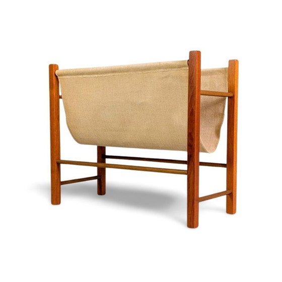 Portariviste/portagiornali vintage in teak e lino, anni '60