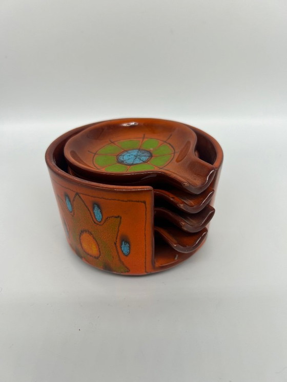 Posacenere singoli in ceramica arancione con supporto, anni '70