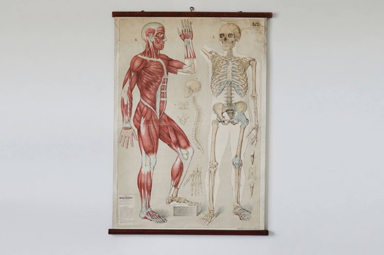 Questo splendido poster scolastico vintage offre una rappresentazione dettagliata dell'anatomia del corpo umano. Con i suoi colori vivaci e le illustrazioni accurate, aggiunge un tocco di fascino retrò a qualsiasi ambiente. Perfetto per gli appassionati di storia e scienze, o come elemento decorativo unico per la casa o l'ufficio. Le listelle di legno nella parte superiore e inferiore conferiscono un aspetto autentico e facilitano l'appendimento. Scoprite la bellezza dell'arte educativa con questo intramontabile poster scolastico.