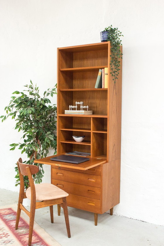 Poul Hundevad libreria segretaria a ripiani alti vintage in teak