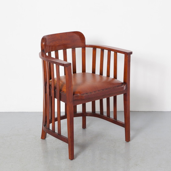 Sedia da conferenza Globe Wernicke Barrister con braccioli, in mogano. Otto Wernicke progettò il suo famoso sistema di librerie modulari impilabili "Elastic" nel 1890 (brevettato nel 1892). Acquisita nel 1899 dalla Globe Files Company, produttrice di mobili per ufficio, creò la suite per ufficio Globe-Wernicke, che è in produzione praticamente da allora. L'azienda è stata fusa e acquisita più volte e, a quanto pare, la Divisione Indonesiana è ancora attiva. Di recente abbiamo acquisito un'intera suite per ufficio Globe Wernicke Indonesian Division, di cui questa è una delle sedie. Altri articoli elencati di seguito. Ampia, pensata per stupire, in mogano massello. Seduta in pelle screziata con borchie decorative in ottone lungo i bordi. Forma a botte con schienale curvo e listelli verticali. Imponente sedia per sala riunioni, ufficio, biblioteca o riunione. Anche per scrivania o sala da pranzo. Seduta in stile Art Déco, vintage, vittoriano retrò per avvocati/giuristi. 5 pezzi in magazzino.