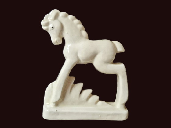 Splendida statua stilizzata di un puledro/cavallino del periodo Art Déco.