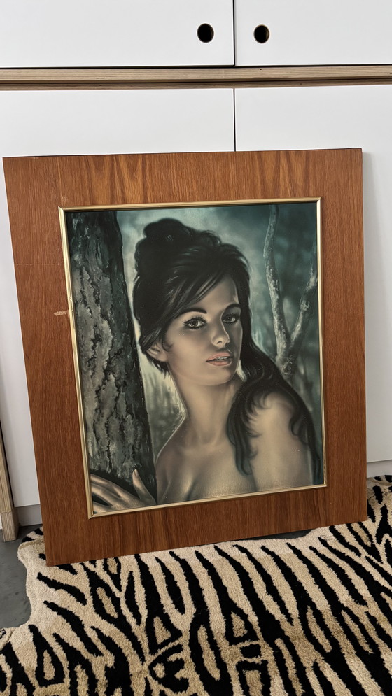 Vedere le foto per le condizioni d'uso: graffi alla cornice in legno e a quella dorata sul lato sinistro. Il bordo della cornice in legno si allenta in alcuni punti ed è danneggiato.
