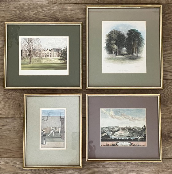Un quartetto di stampe antiche inglesi. Acquistato a Stratford-upon-Avon presso la Pickwick Gallery. Dimensioni: stampa Eton House 20x16 cm, cornice 31x27 cm / Cliff 17,5x21,5 cm, cornice 30x34 cm / Shrewsbury 18x14,5 cm, cornice 30x27 cm / Eton Fives 10x16 cm, cornice 23x29 cm.