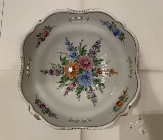 Ciotola in porcellana fatta a mano con tre piedi, proveniente dalla Manifattura di Porcellana Plaue, 1817. Dipinta a mano, dimensioni: Ø 18 cm, H 8 cm. In perfette condizioni, senza scheggiature o crepe. Prezzi comparativi con danni > 90 €, senza danni > 140 €.