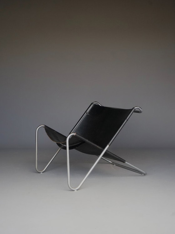 Realizzata in pelle di mucca molto spessa e con una struttura tubolare cromata. Questo esemplare è completamente originale e presenta solo minimi segni d'uso, che conferiscono alla sedia un'attraente patina calda. La sedia è stata acquistata dal primo proprietario.