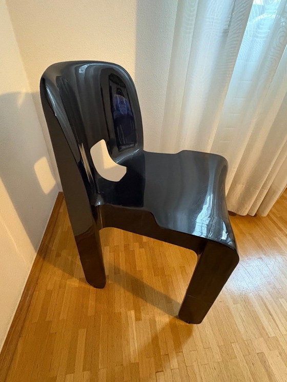 La sedia affascina con la sua forma scultorea e impilabile e l'intramontabile finitura nera lucida. Non è solo una seduta comoda, ma anche un ricercato oggetto da collezione per gli amanti del design italiano degli anni '60 e '70.