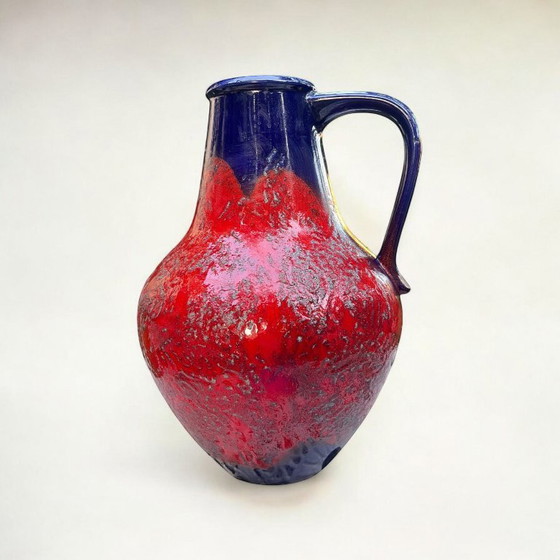 Rarità! Grande vaso d'epoca Dümler&Breiden, modello 313/50, brocca in ceramica lavica rossa-blu con manico