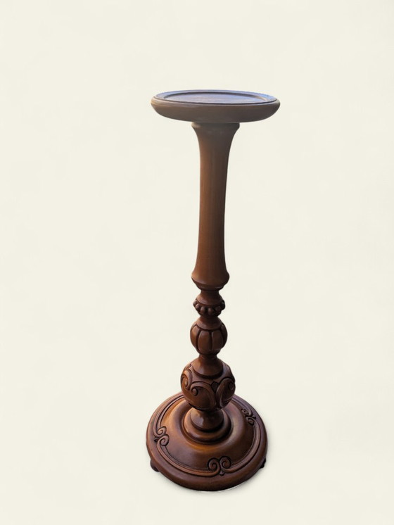 Aggiungi un tocco di stile ed eleganza alla tua casa con questo splendido portavasi in legno massello chiaro. Il design tornito a mano combina linee pulite con delicati intagli curvi alla base, conferendo al pezzo un tocco speciale. Il colore caldo e chiaro del legno fa sì che il portavasi si adatti senza sforzo a un'ampia varietà di stili d'interni, dal classico al moderno, dal boho al country. È perfetto come base per piante, vasi, sculture o oggetti decorativi speciali, mettendoli in mostra a un'altezza confortevole. Che si trovi in soggiorno, in veranda, in corridoio o come elemento di richiamo in un negozio, questo portavasi attirerà sicuramente l'attenzione. Mai usato e in ottime condizioni! Il portavasi è alto 74 cm (29 pollici) e ha un diametro di 27 cm (11 pollici).