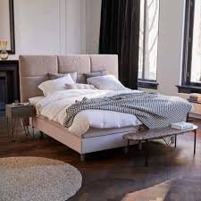 Box spring Auping Valencia - 180x210 con testiera. Materassi Auping de Luxe, rivestimento in lattice con zona spalle. Senza topper, versione piatta, tessuto Maze, colore crema, misura 180x210. È possibile richiedere un nuovo topper a scelta con un supplemento.