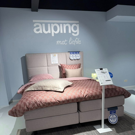 Box spring Auping Valencia - 180x210 Box spring Auping piatto con testiera Valencia alta 145 cm e larga 180 Dimensioni 180 x 210, senza topper Materassi de Luxe, con lattice e zona spalle, 1 x medio e 1 x rigido Scatole Scatole originali piatte (con base a spirale sottostante) Colore tessuto beige chiaro. Prezzo senza topper, è sempre possibile ordinarne uno, ora ci sono 2 topper separati in negozio Nella foto prezzo con 2 topper e qualità separati, solitamente 1 grande per la versione piatta
