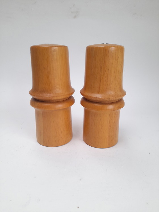 Deliziosa coppia di macinapepe e macinasale di Richard Nissen, Danimarca. Legno chiaro, vintage anni '80.