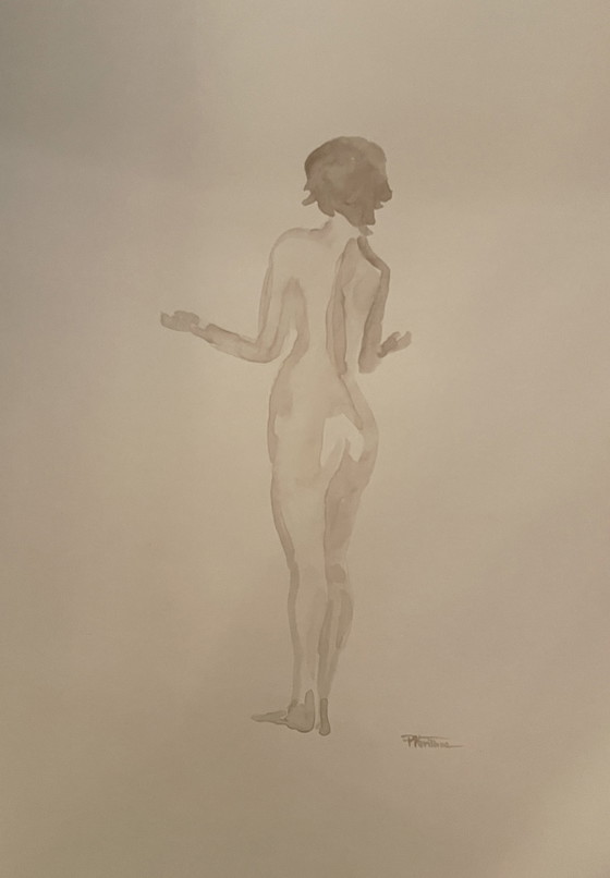 Ritratto femminile dipinto ad acquerello color seppia "Offerta"