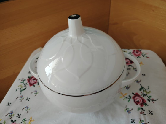Rosenthal Lotus bianco, zuppiera, piatto fondo disegnato da Björn Winblad, bordo in platino