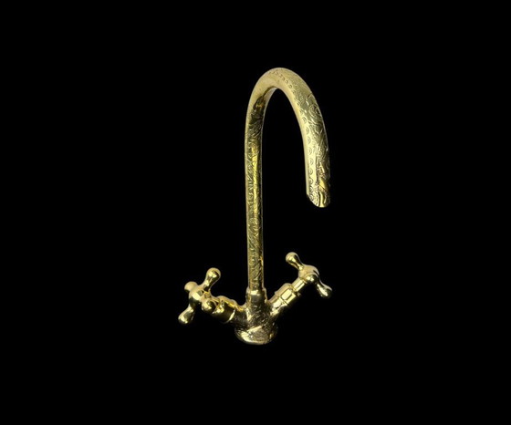 Rubinetto marocchino in ottone con beccuccio a collo d'oca inciso