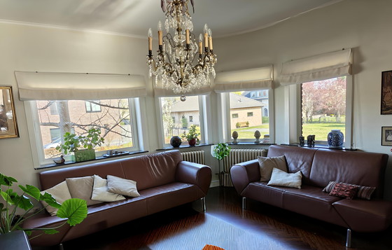 Ervaar de tijdloze elegantie van de Jori salon, een meesterwerk van modern design dat zowel comfort als stijl biedt. Deze prachtige bruine lederen banken zijn perfect voor elke woonkamer die een vleugje luxe en verfijning verlangt.