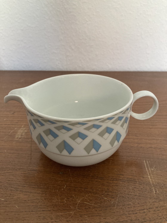Impreziosisci la tua tavola da pranzo con questa splendida casseruola Rosenthal, vera incarnazione di eleganza senza tempo e maestria artigianale. Realizzata in pregiata porcellana, questa salsiera presenta un raffinato motivo geometrico nei rilassanti toni del blu e del grigio, su uno sfondo bianco candido. Perfetta per servire salse, sughi o condimenti, questa casseruola aggiunge un tocco di modernità di metà secolo a qualsiasi pasto. Realizzata da Rosenthal, rinomata per la sua porcellana di alta qualità e il design innovativo, questa casseruola non è solo funzionale, ma anche un'elegante aggiunta a qualsiasi tavola da pranzo. Richiedi oggi stesso la personalizzazione in base ai tuoi gusti.
