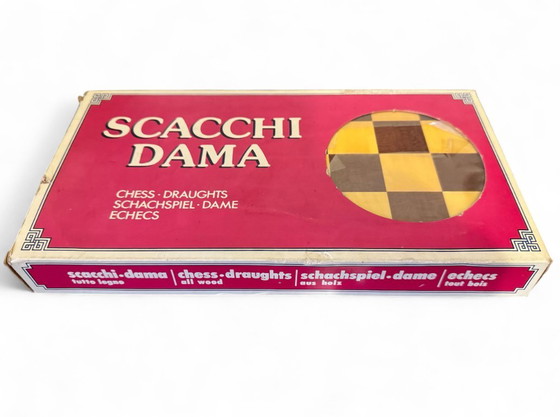 Scacchi e dama da viaggio e da casa vintage. Scacchiera pieghevole per scacchi e dama completamente in legno (scacchiera e pedine) in confezione originale degli anni '70. Misure scatola 32x17 cm, peso 670gr. Marca Didatto -una delle principali aziende del settore giochi- articolo 641.