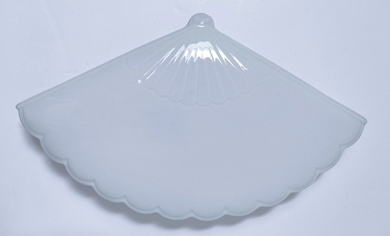 Portagioie a forma di ventaglio. Manifattura francese degli anni '80. Porcellana di Limoges, Francia (vedi marchio sul fondo). Condizioni generali ottime. Lievissimi segni di usura in alcuni punti (vedi foto e zoom).