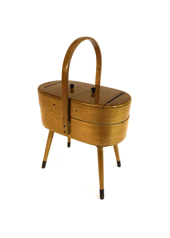 Scatola da cucito vintage in legno di faggio, Germania, anni '60.