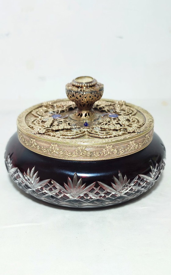 CondizioneEccellenteColoriOro, Marrone, ArgentoMaterialeMetallo, VetroNumero di articoli1Altezza9 cmLarghezza14 cmProfondità14 cm