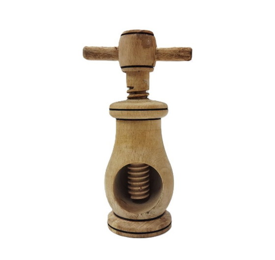 Schiaccianoci in legno d'epoca con meccanismo a vite