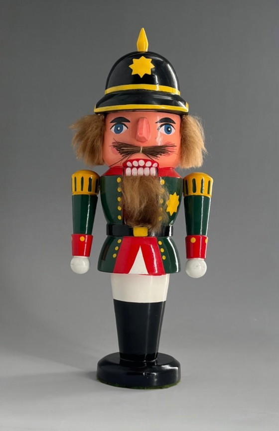 Vintage, schiaccianoci in legno, decorazioni natalizie, oggetto da collezione natalizio, retrò, patina, arte popolare, dipinto a mano, decorazioni invernali rustiche, Natale nostalgico, arredamento d'interni, soldatino, statuetta classica natalizia, oggetto da collezione, design Whoppah, decorazioni invernali.