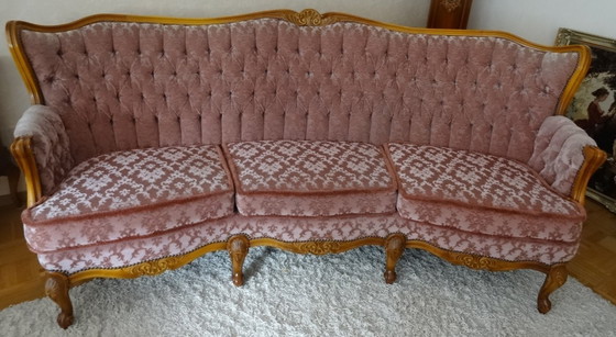 CondizioneMolto buonoColoriMarrone, RosaMaterialeLegno, VellutoNumero di articoli1Altezza86 cmLarghezza215 cmProfondità85 cm
