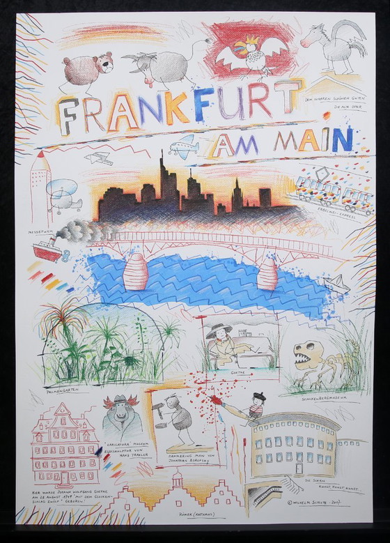 Scoprite un'opera d'arte unica: il disegno originale del manifesto della città del rinomato artista Wilhelm Schlote. L'opera è stata realizzata con matita colorata e inchiostro su carta a mano Fabriano di alta qualità e risale al 2017. Questo pezzo unico, firmato e datato, è un'attrazione speciale per collezionisti e appassionati.
