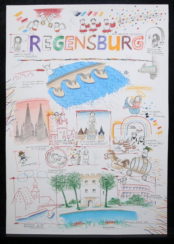 Scoprite un'opera d'arte unica: il disegno originale del manifesto della città del rinomato artista Wilhelm Schlote. L'opera è stata realizzata con matita colorata e inchiostro su carta a mano Fabriano di alta qualità e risale al 2016. Questo pezzo unico, firmato e datato, è un'attrazione speciale per collezionisti e appassionati.