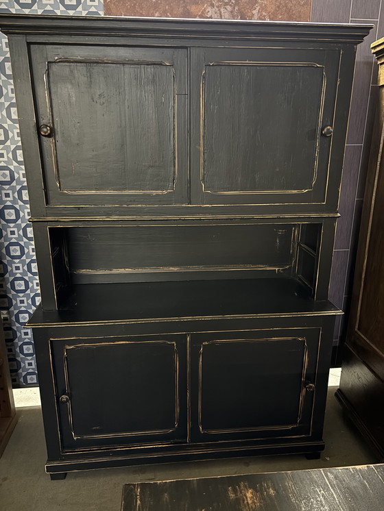 Fate un salto indietro nel tempo con questo squisito mobiletto scolastico vintage, un perfetto connubio tra funzionalità ed eleganza senza tempo. La sua ricca finitura nera, delicatamente anticata per rivelare i dettagli del legno sottostante, aggiunge un tocco di carattere e raffinatezza a qualsiasi ambiente.