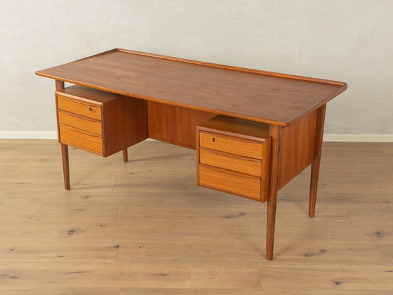 Meravigliosa scrivania di Peter Løvig Nielsen degli anni '60. Corpo di alta qualità in impiallacciatura di teak con sei cassetti, piano sospeso con bordo in legno massello, due scomparti porta libri sul retro e gambe in legno massello.
